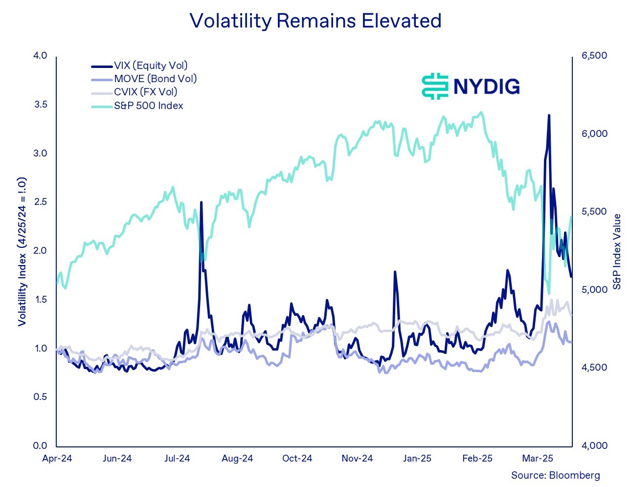 在股市(VIX指数)、外汇(CVIX指数)以及利率和债券(MOVE指数)波动性激增之际,投资者正在寻找避险资产。